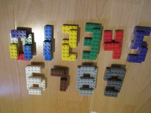 But first what do we mean by a number and a representation of a number? If I told you to make the numbers 0 to 9 in lego (go on have a go) you may well make something like this…