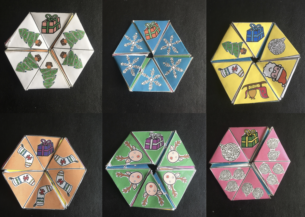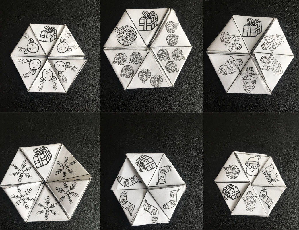 - Find all of Father Christmas’ lost gifts by pinching and folding the flexagon to reveal the hidden faces