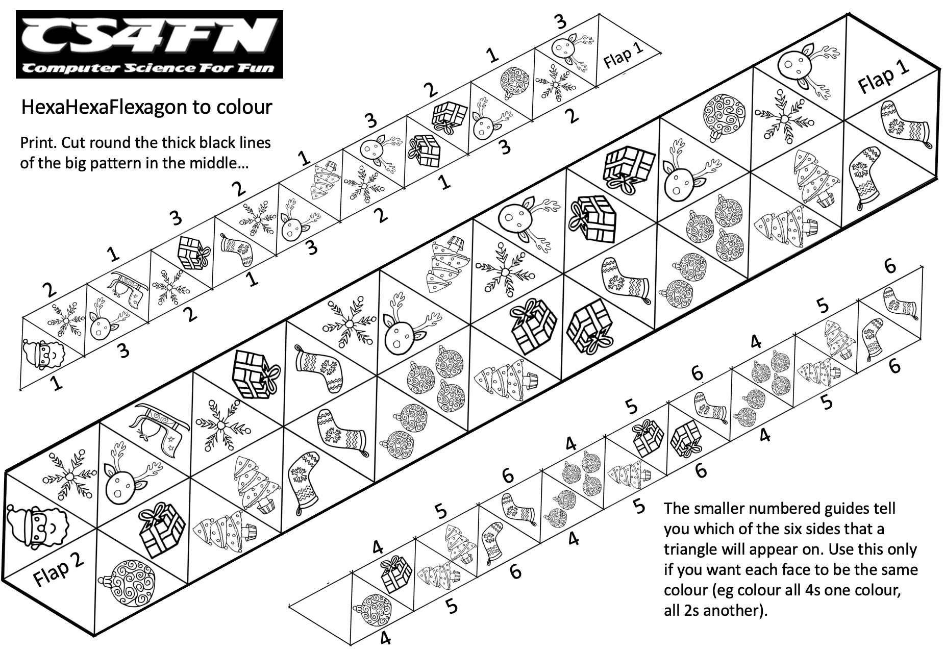 2 thoughts on “CS4FN Advent Calendar – bonus material: HexaFestiveFlexagons to make and colour in”