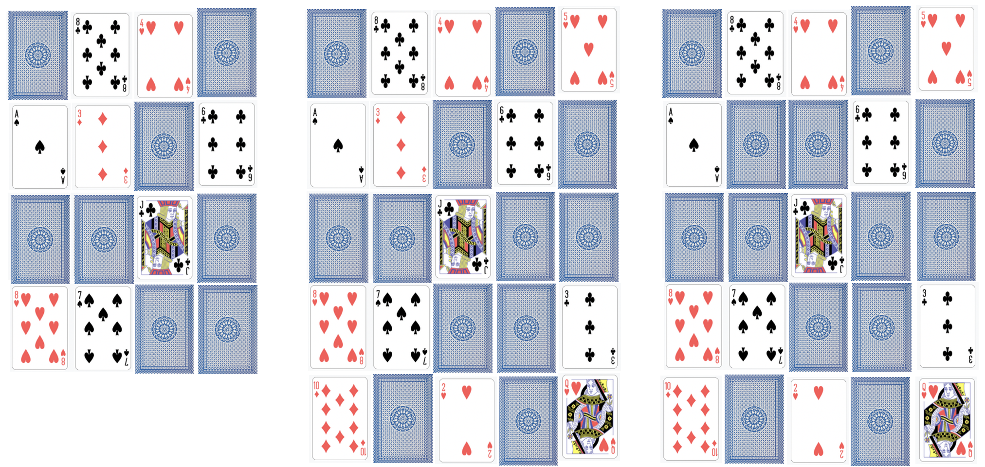 Now avert your eyes (or get someone to blindfold you) and ask the audience member to turn over one card from the grid without telling you which. (Example in the picture on the right, above).