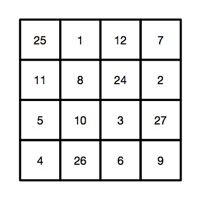 Let’s call the chosen number N (in our example: N is 45). You are going to calculate the following four numbers from it: N-21, N-20, N-19 and N-18, then put them in to a special, precomputed magic square pattern.