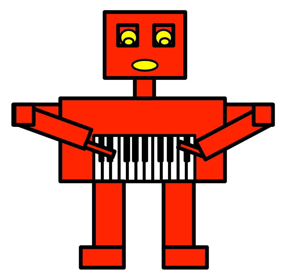A robot with a keyboard stomach playing the keyboard.