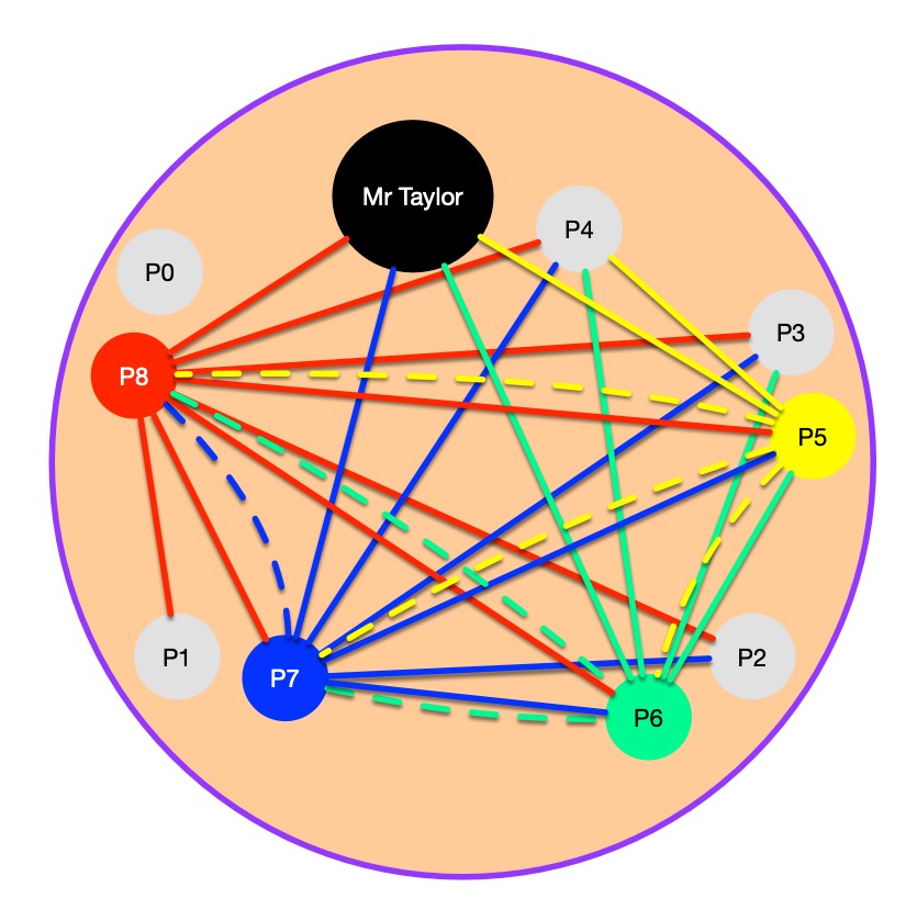 Notice that the setting of our puzzle is finite: there are 10 people shaking hands, so the number of ways they shake hands is also finite if bigger than say checking 26 different letters of the crossword problem. That means you could potentially list all the possible ways people might shake hands to solve the puzzle. This is, however, not what we are aiming for. We would like to solve the puzzle by analysing the structure of the problem instead of performing brute force computation.
