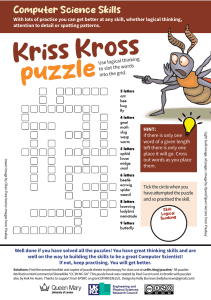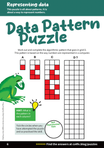 Primary Puzzles 1 A booklet of puzzles with links to computing Download Primary Puzzle Book 1. Solutions are found below. UK Schools order print copies of our magazines and booklets here (while stocks last). You can also print certificates to award to your class or home-educated child. Solutions The Mouse Maze – Page 1 Click here for the solution to the cover page mouse mat maze. 4×4 Sudoko – Page 2 Click here for the solution to the 4×4 Sudoko. Note that in this puzzle the corners did NOT have to have all numbers 1 to 4. 4×4 Sudoku – Page 3 Click here for the solution to the second 4×4 sudoku. Note that in this puzzle the corners DID have to have all numbers 1 to 4. Spot the difference – Page 4 Click here for the solution to the spot the difference puzzle. Scratch spot the difference – Page 5 Click here for the solution to the Scratch spot the difference puzzle. Data Pattern Puzzle – Page 6 Click here for the solution to the data pattern puzzle. Ow! Kriss Kross – Page 7 Click here for the solution to the Ow! Kriss Kross. Pixel Puzzle – Page 8 Click here for the solution to the Pixel Puzzle. Symmetrical Pixel Puzzle – Page 9 Click here for the solution to the Symmetrical Pixel Puzzle. Compression Puzzle – Page 10 Click here for the solution to the Compression Puzzle. Doodle Draw – Page 11 Click here for the solution to the Doodle Draw. Mini-beast Kriss Kross – Page 12 Click here for the solution to the Mini-beast Kriss Kross. This blog is funded by EPSRC on grant EP/W033615/1. Share this: Click to share on Tumblr (Opens in new window) Tumblr Click to email a link to a friend (Opens in new window) Email Click to share on X (Opens in new window) X Click to share on Facebook (Opens in new window) Facebook Like Loading...
